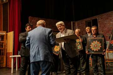 در پایان دو عضو محترم شورای اسلامی شهر رشت، جناب آقای محمدحسن عاقل منش، رئیس کمیسیون گردشکری و جناب آقای مهیار سماکچی رئیس کمیسیون حمل و نقل و ترافیک، به همراه نمایندگان دبیرخانه شهر دوستدار سالمند رشت، جوایز برندگان لیگ زبان گیلکی و داوران محترم را اهدا کردند.