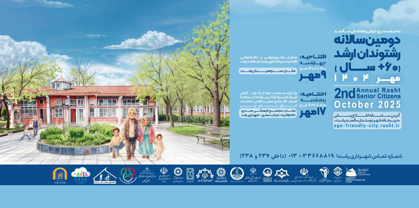 دومین سالانه رشتوندان ارشد با تاکید شهردار رشت رئیس دبیرخانه شهر دوستدار سالمند رشت به مناسبت هفته سالمند برگزار می شود.